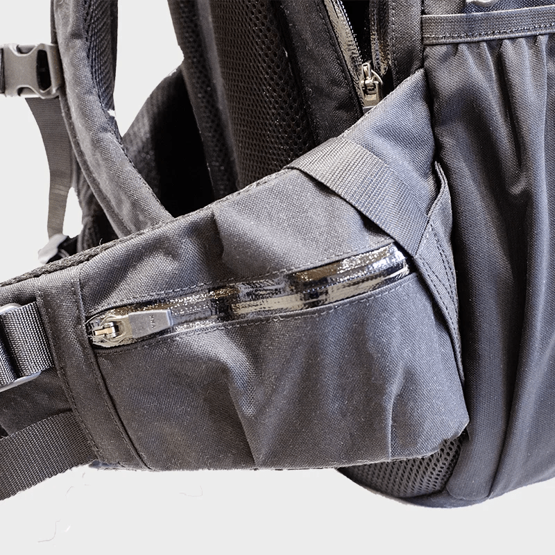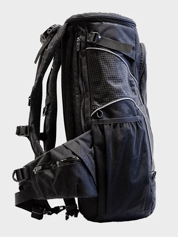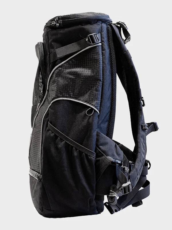 Whether it's too hot or too cold, that's not a problem with this Adventure Cat Pack. Our hydration pocket has a small Velcro pocket that stores a hot or cold pack. Storage is not a problem, because we have pockets aplenty, and a padded hip belt that distributes the load of the pack comfortably. There is also has a zipper pocket, purrfect for stashing some cat treats! The sides of the Lyra Cat Pack have each have a mesh pocket, and one is slanted to allow easier access while wearing the pack. In the bottom of the pack, underneath the cat pouch is a roomy zippered pocket that easily allows you to bring other needed supplies for the days activity.