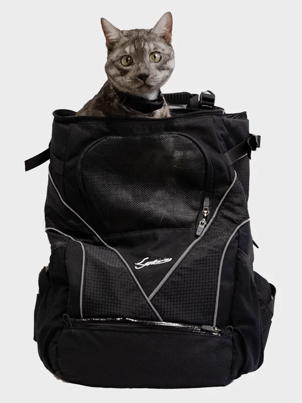 The Lyra Cat Pack is the pack for Adventure cats. Human and Cat comfort was our priority with this Adventure Cat Pack. Your cat will be stable during activities and will be sitting up high enough to see over the users shoulder. Your cat will be on an adjustable shelf, so you will not have to worry about your cat not being able to see over your shoulder! The top mesh panel zips closed and can be completely removed. The optional mesh cinch zipper collar is an alternative to the solid top. The bungee cord will cinch around your cats neck to provide comfort and safety. Your cat will have no issues poking their head out looking around and the freedom to look around will make your cat enjoy the activity you're doing much more!